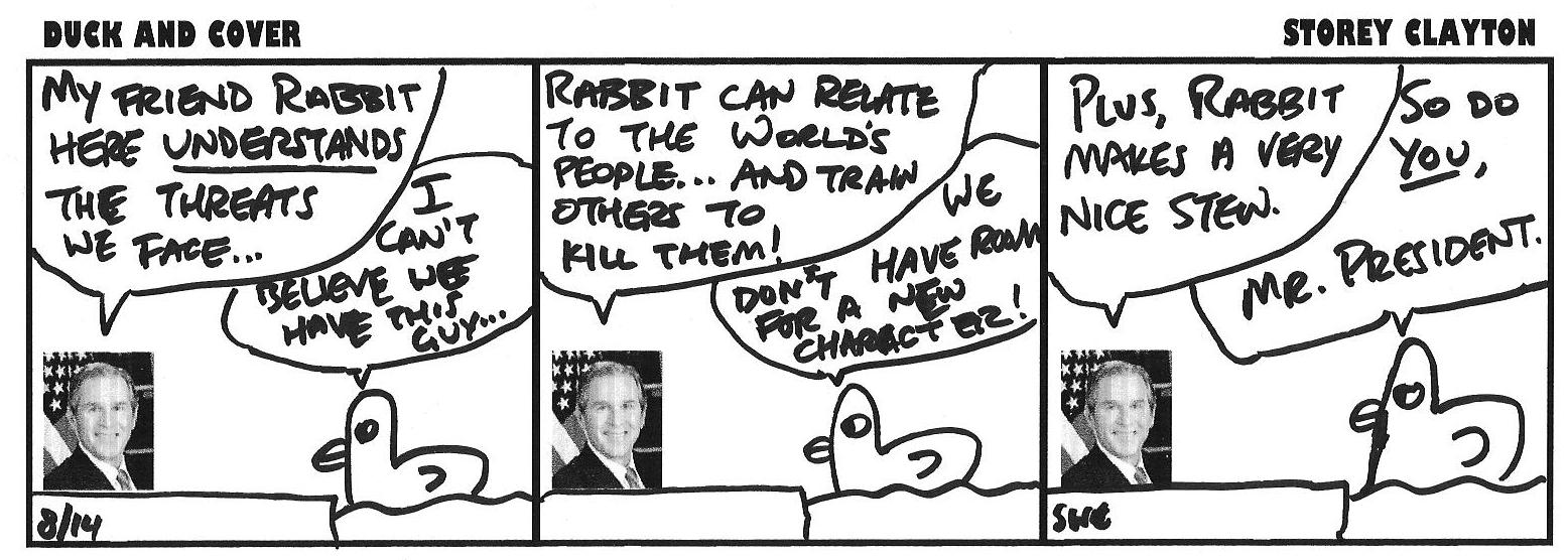 Duck and Cover is © copyright 2005 Storey Clayton. Please feel free to post these comics