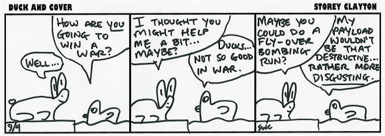 Duck and Cover is © copyright 2005 Storey Clayton. Please feel free to post these comics