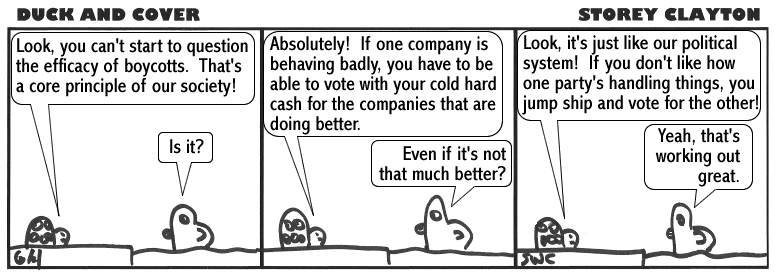 Duck and Cover is © copyright 2005-10 Storey Clayton.  Please feel free to post these comics around the web.  Links back to this site appreciated.