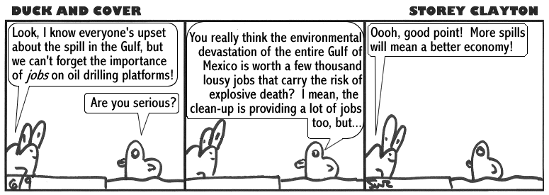 Duck and Cover is © copyright 2005-10 Storey Clayton.  Please feel free to post these comics around the web.  Links back to this site appreciated.