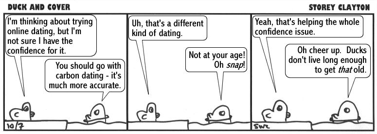 Duck and Cover is © copyright 2005-10 Storey Clayton.  Please feel free to post these comics around the web.  Links back to this site appreciated.