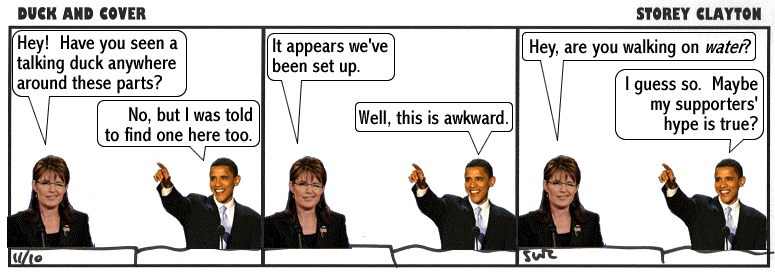 Duck and Cover is © copyright 2005-10 Storey Clayton.  Please feel free to post these comics around the web.  Links back to this site appreciated.
