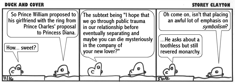 Duck and Cover is © copyright 2005-10 Storey Clayton.  Please feel free to post these comics around the web.  Links back to this site appreciated.