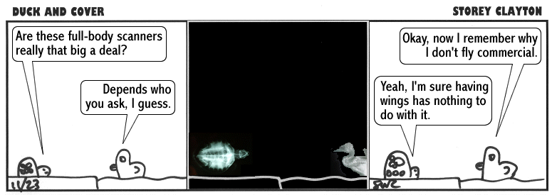 Duck and Cover is © copyright 2005-10 Storey Clayton.  Please feel free to post these comics around the web.  Links back to this site appreciated.