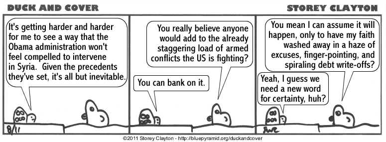 Duck and Cover is © copyright 2005-11 Storey Clayton.  Please feel free to post these comics around the web.  Links back to this site appreciated.