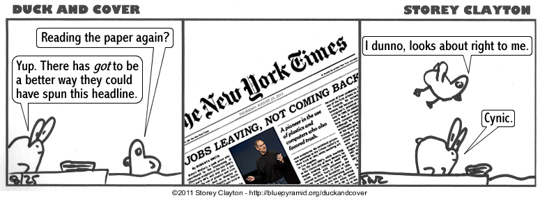 Duck and Cover is © copyright 2005-11 Storey Clayton.  Please feel free to post these comics around the web.  Links back to this site appreciated.