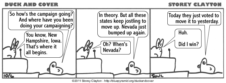 Duck and Cover is © copyright 2005-11 Storey Clayton.  Please feel free to post these comics around the web.  Links back to this site appreciated.