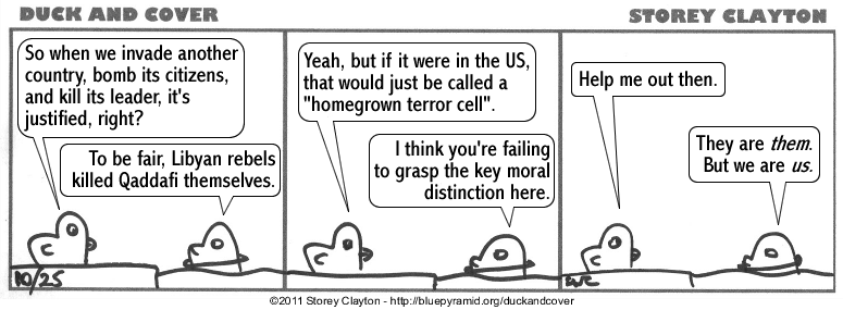 Duck and Cover is © copyright 2005-11 Storey Clayton.  Please feel free to post these comics around the web.  Links back to this site appreciated.