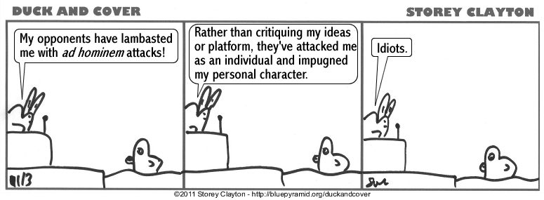 Duck and Cover is © copyright 2005-11 Storey Clayton.  Please feel free to post these comics around the web.  Links back to this site appreciated.