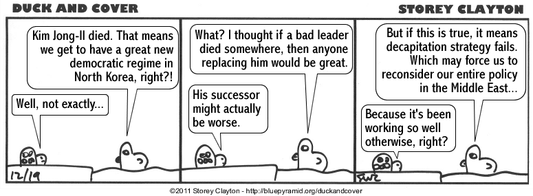 Duck and Cover is © copyright 2005-11 Storey Clayton.  Please feel free to post these comics around the web.  Links back to this site appreciated.